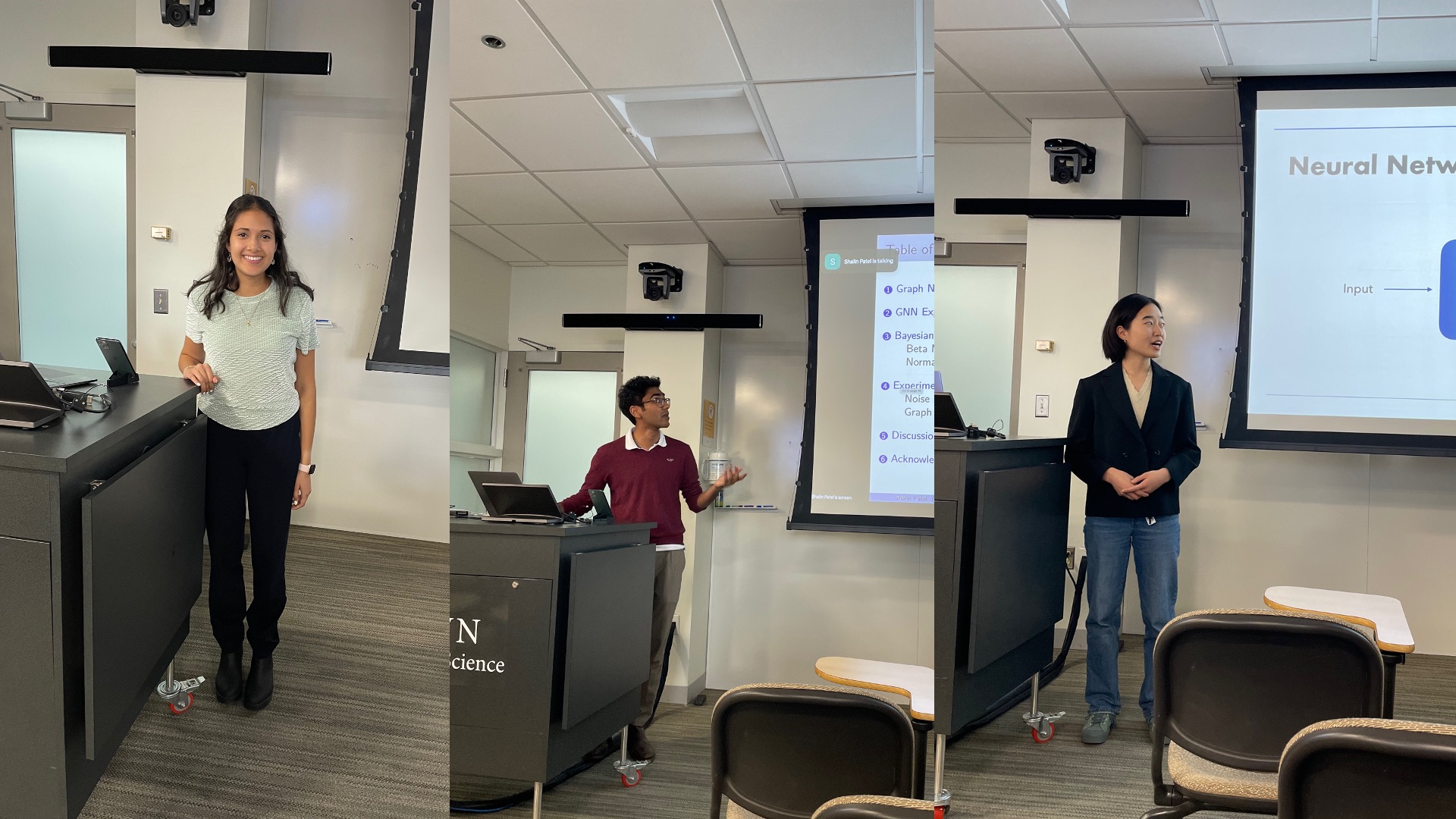 Singh Lab URAs present their CS Honors Thesis projects (May, 2023): (L-R) Nitya Thakkar, Shalin Patel, and Momoka Kobayashi