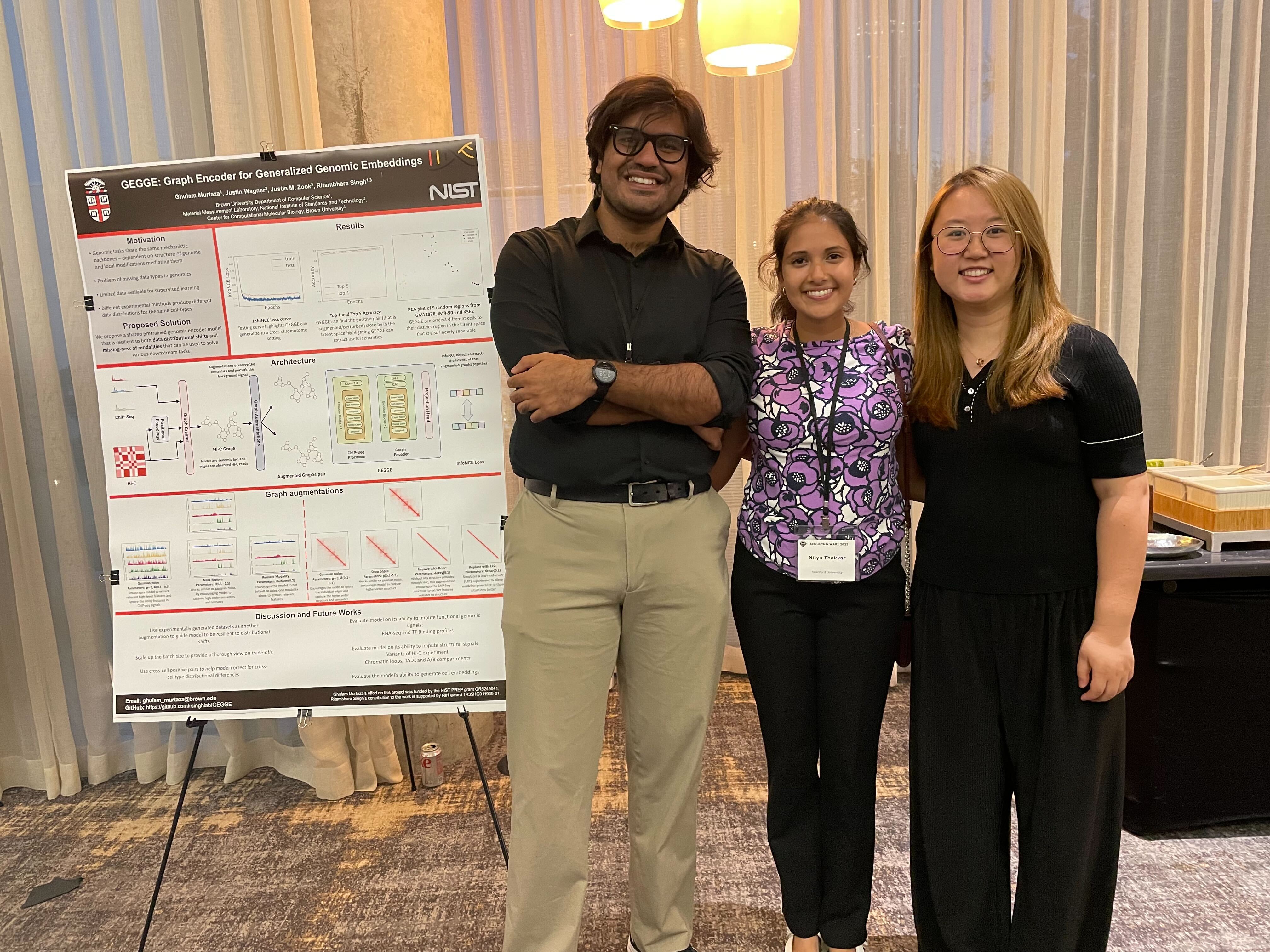 Singh lab members and alumni presenting their research at ACM-BCB 2023 (Houston, Texas). L-R: Ghulam Murtaza, Nitya Thakkar, and Suchen Zheng