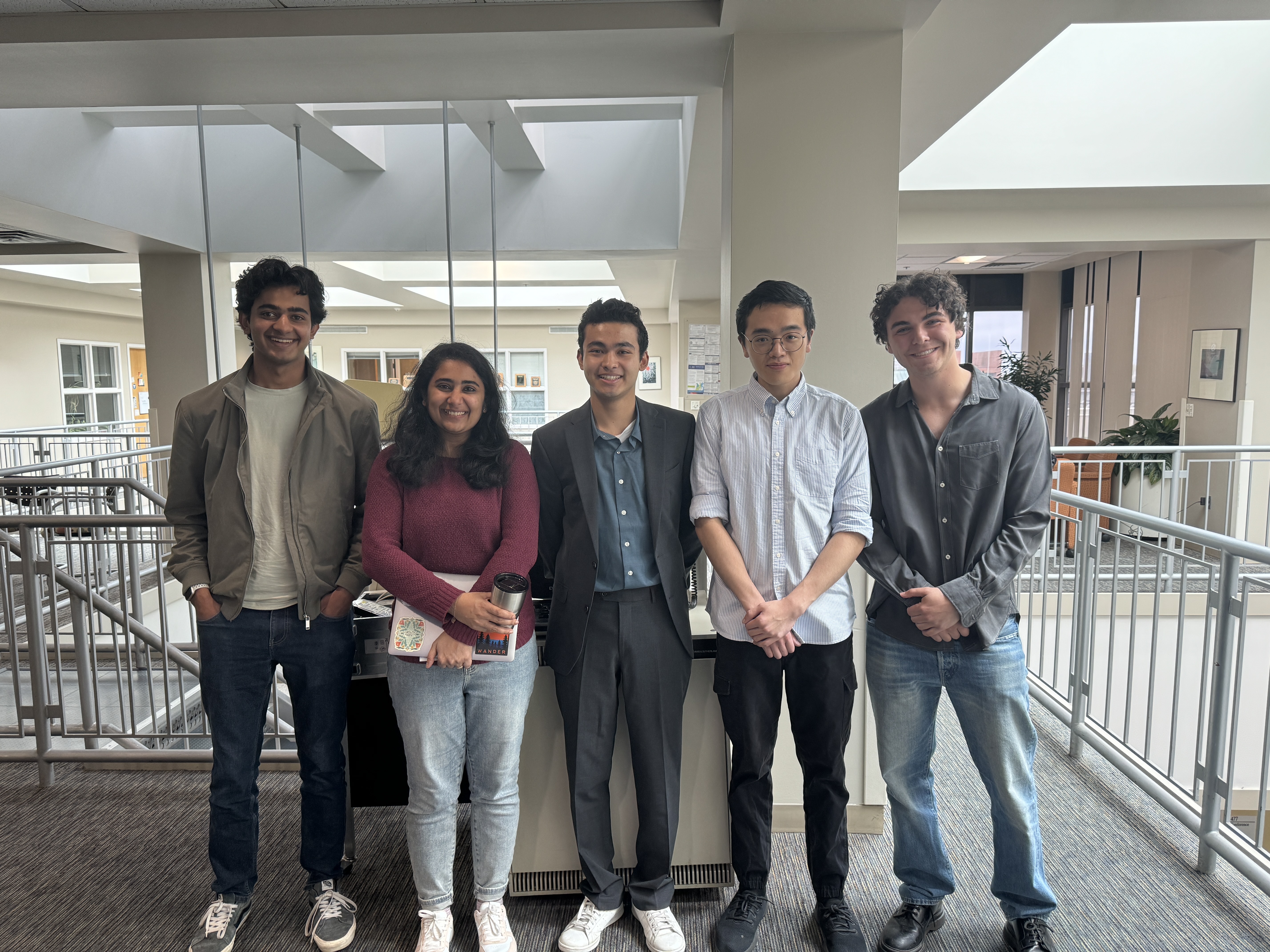 Lab seniors defend their CS Honors Theses L-R: Manav Chakravarthy, Ritambhara Singh, Akira Nair, Wangdrak Dorji, Oliver Kanders (May, 2024)