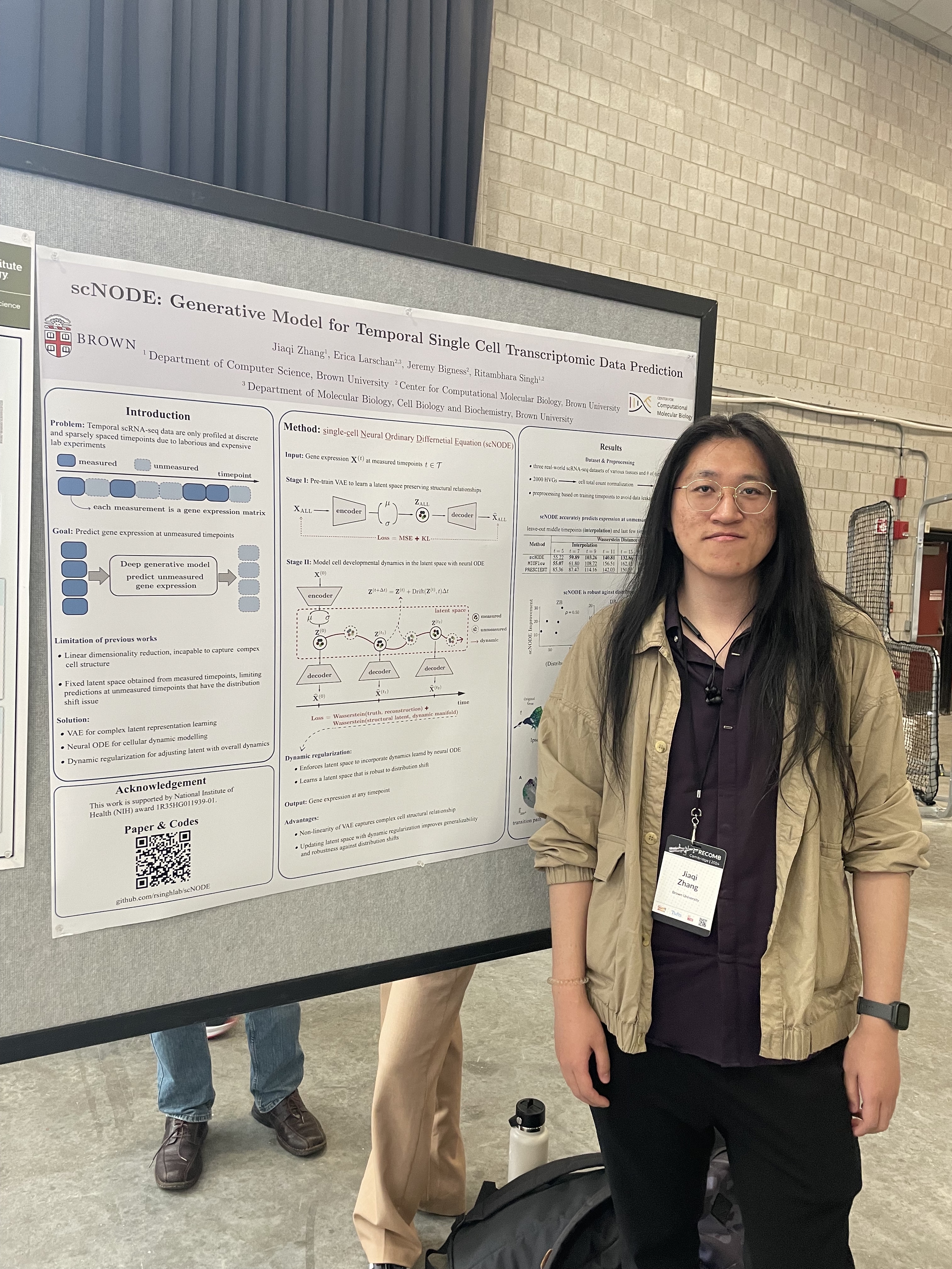Jiaqi Zhang presents his project as a poster presentation at RECOMB 2024 (Boston, May 2024)