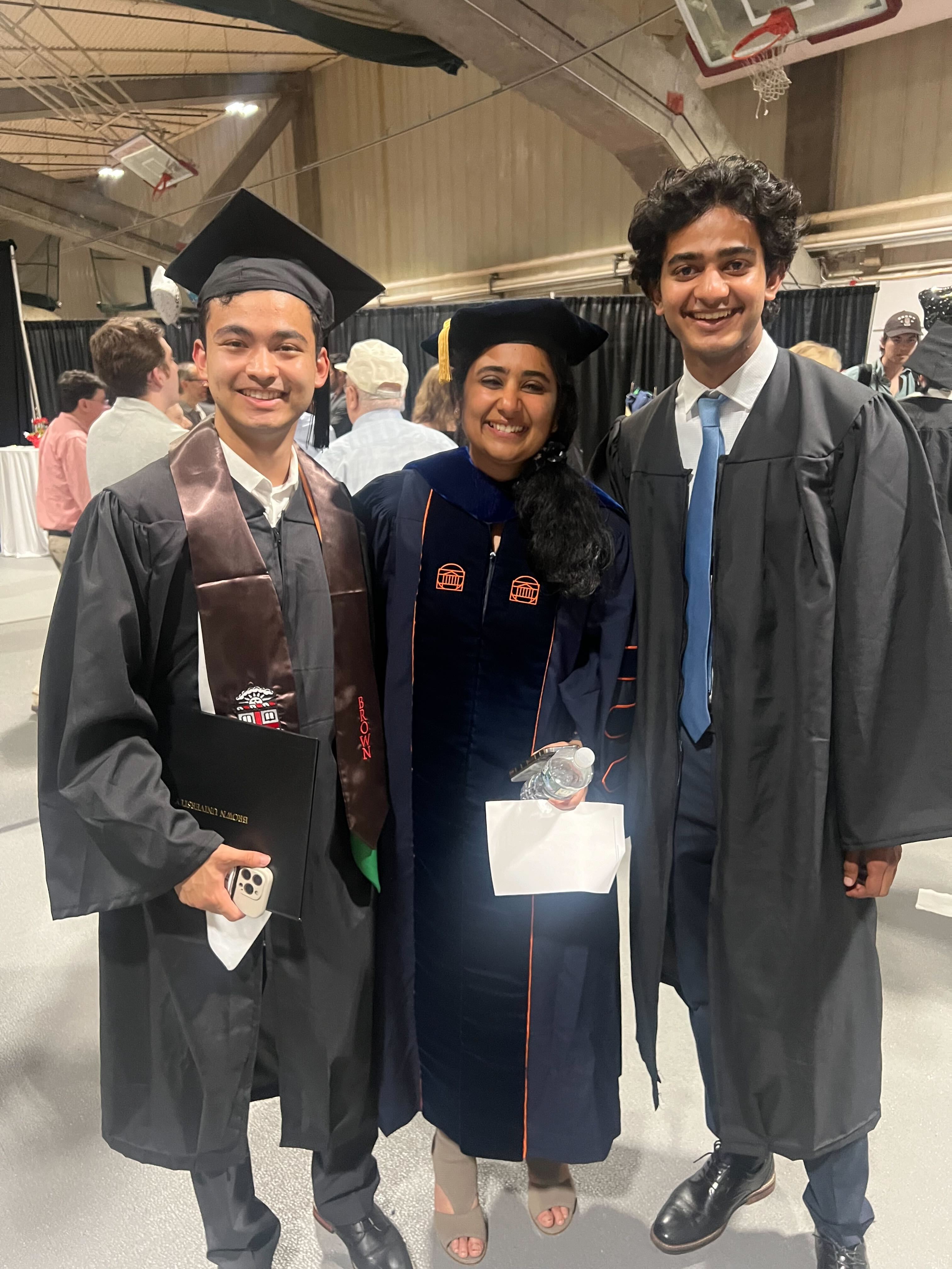 Graduation Day! L-R: Akira Nair, Ritambhara Singh, Manav Chakravarthy (May, 2024)