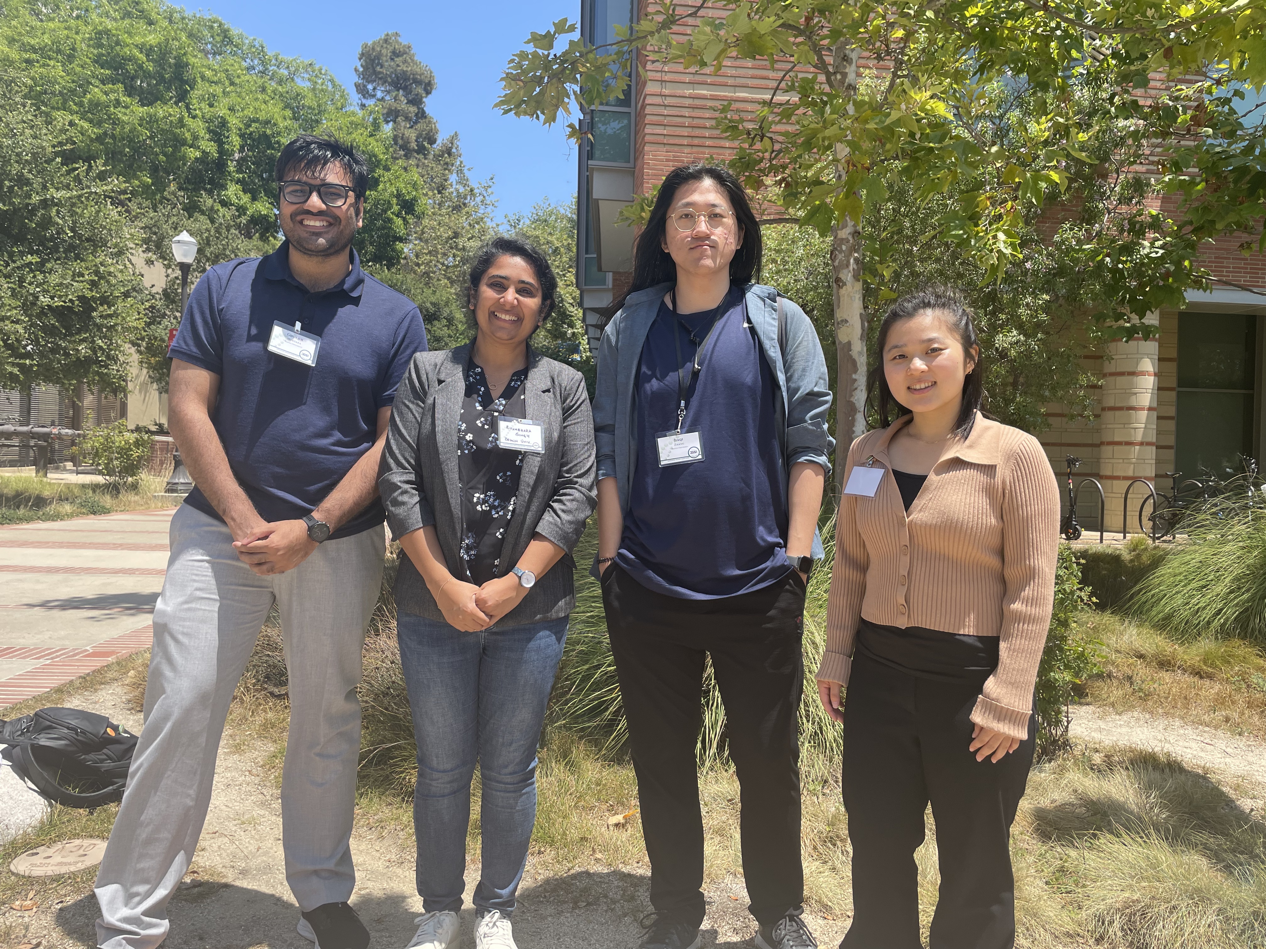 Singh lab @ Brown at UCLA CGSI 2024. L-R: Ghulam Murtaza, Ritambhara Singh, Jiaqi Zhang, Hyeyeon Hwang