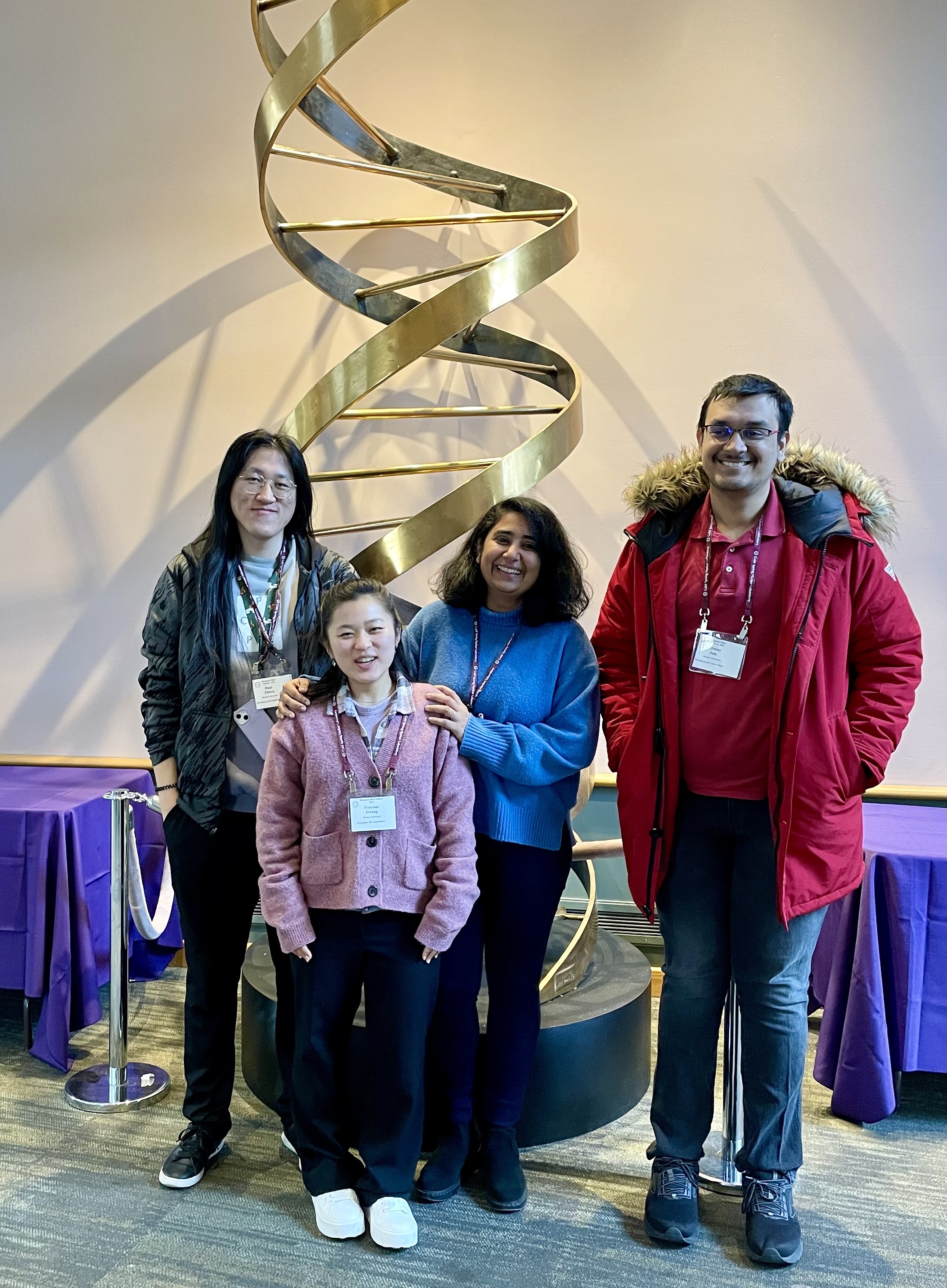 Singh Lab @ Brown members at Cold Spring Harbor (Nov, 2024): (L-R) Jiaqi Zhang, Hyeyeon Hwang, Ritambhara Singh, and Atishay Jain
